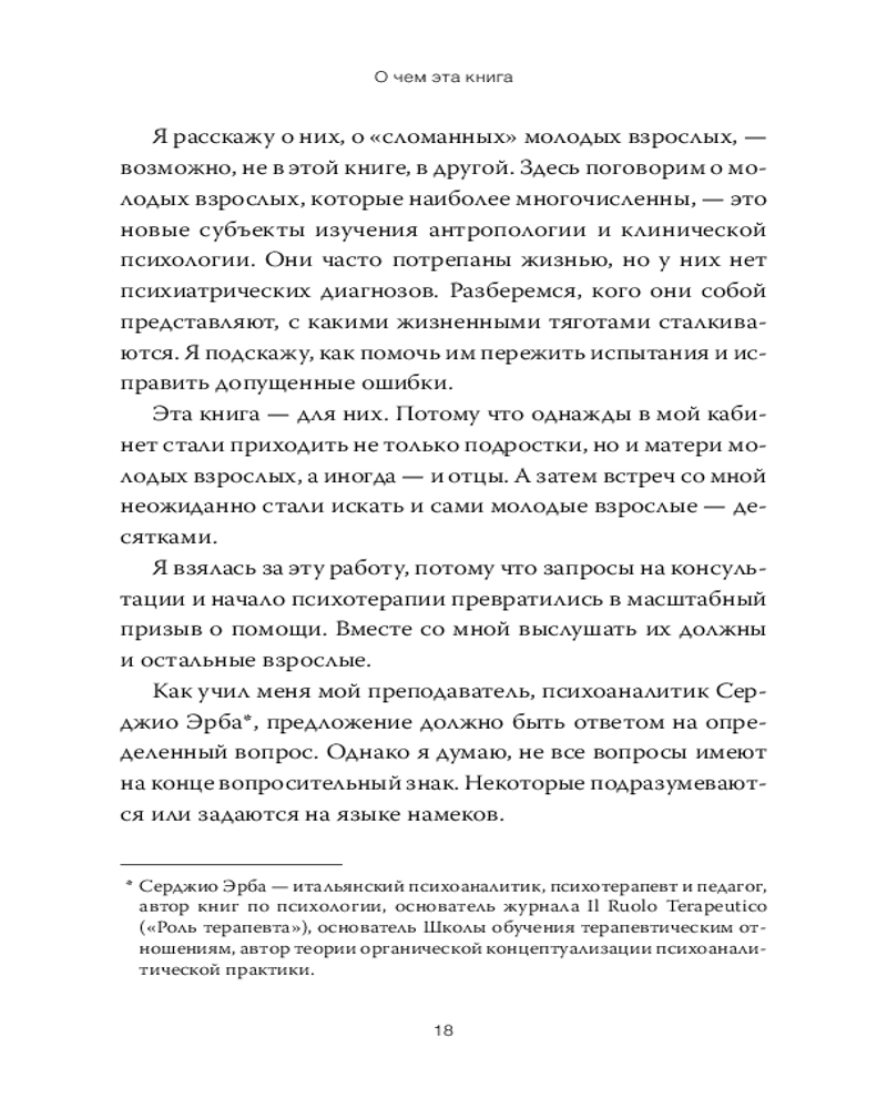💳 Оплатить за товар можно при получении 🇰🇿 Есть бесплатная доставка по Казахстану от 1 дня 🎁 Копите бонусы с каждой покупки Серия: Цифровые технологии Под обложкой — тема сепарации и психологического взросления. Популярный итальянский психотерапевт Стефания Андреоли разбирает типичные проблемы молодых взрослых: тревогу, конфликты со старшим поколением, поиск своего собственного места в жизни, трудности профессионального развития и романтических отношений. Ее наблюдения и комментарии создают чувство поддержки, принятия и глубокого понимания сложностей 20-30-летних. Рекомендации, которые Стефания дает своим клиентам, помогут по-новому взглянуть на проблемную ситуацию, отделиться от родителей и опасных установок из детства и найти свой путь в жизни. |