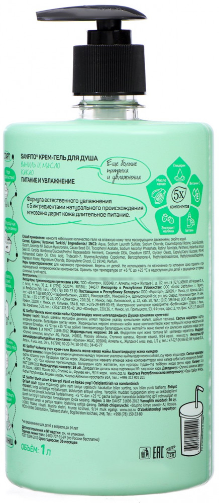 Sanfito Крем-гель для душа «Ваниль и масло какао»