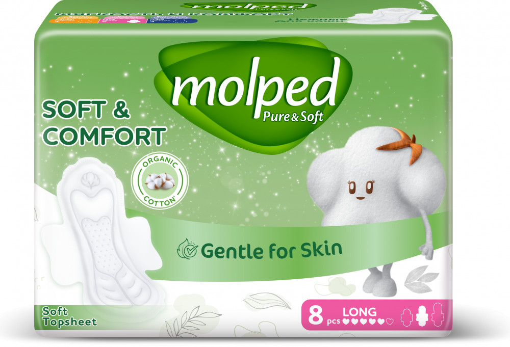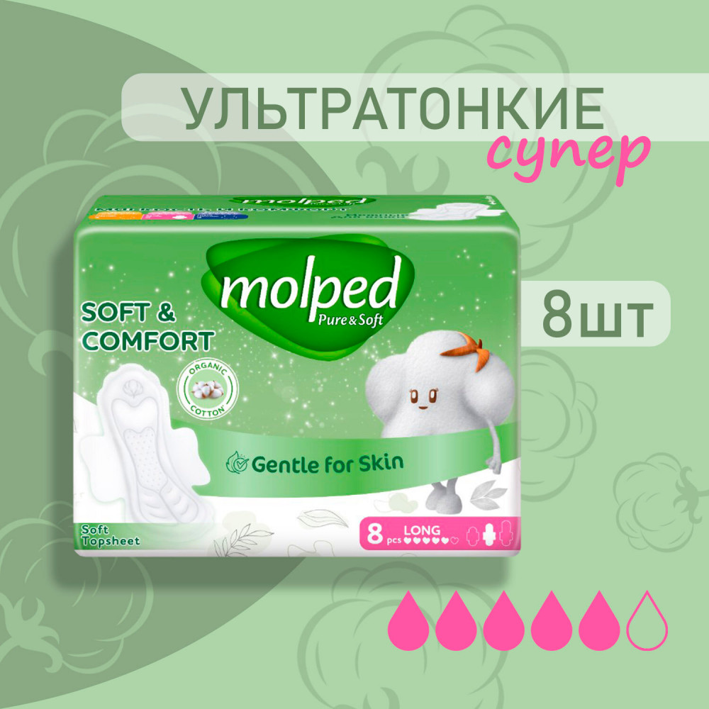 Серия: Pure & Soft Женские ультратонкие гигиенические прокладки с крылышками Molped Pure Soft super. Не ароматизированные. Мягкая хлопковая поверхность, обновленный мягкий верхний слой. Дышащий верхний слой, который позволяет вашей коже чувствовать себя комфортно в течение всего дня. Защита от протекания: новая форма с защитой от протекания идеально подходит для вашего белья. Новая синяя защитная зона немедленно впитывает влагу. Максимальная сухость в течение всего дня. Идеальное крепление: новые широкие крылышки прочно закрепляют прокладку на вашем белье. Максимальная уверенность благодаря уникальной форме, которая подходит вашему телу. |