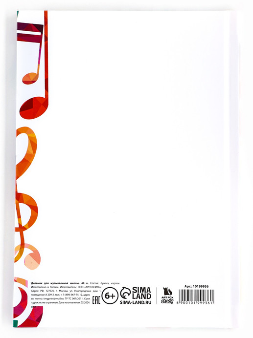 ArtFox Дневник для музыкальной школы «Разноцветные ноты»-25% +14