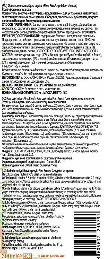 First Fresh Освежитель воздуха «Грейпфрут и апельсин»