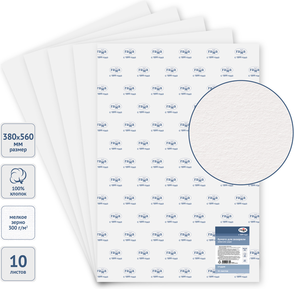 💳 Оплатить за товар можно при получении 🇰🇿 Есть бесплатная доставка по Казахстану от 1 дня 🎁 Копите бонусы с каждой покупки Серия: Студия Бумага для акварели «Гамма» серии «Студия» выполнена из 100 % хлопка без использования кислот и отбеливателей. Зерно — мелкое, плотность 300 г/м2. Размер — 38 × 56 см. В упаковке 10 листов. |