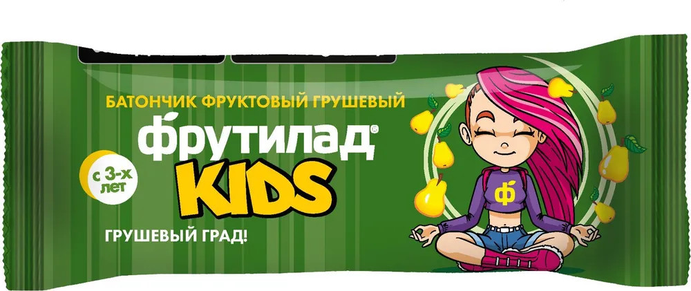 Натуральные фруктовые батончики «Фрутилад KIDS» специально для детского питания с 3х лет. Батончики создаются из асептически упакованного фруктового пюре с добавлением ягод и сушеных фруктов. Мягкий по текстуре, без косточек и осколков, чтобы не повредить молочные зубки! На каждом батончике есть QR-код для перехода на сайт Фрутилад KIDS и скачивания мобильной игры.