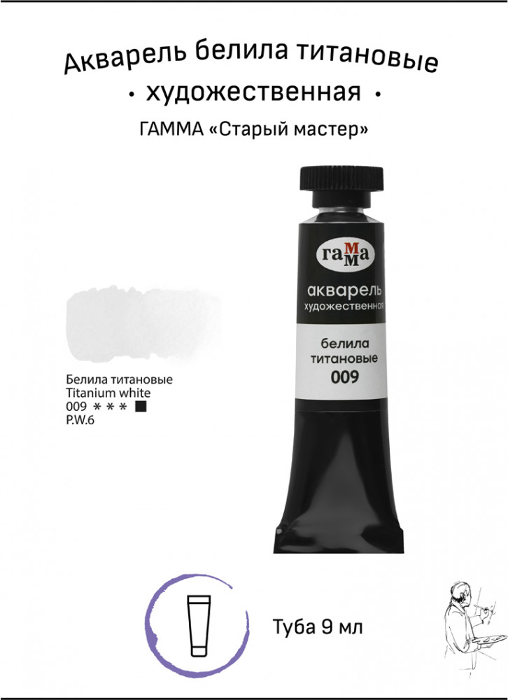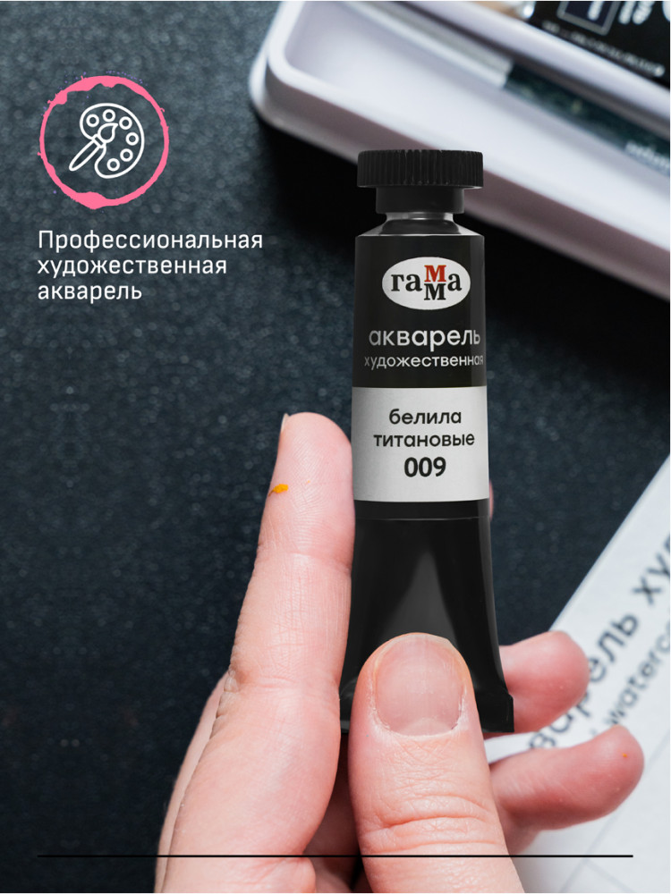 Гамма Акварель художественная, 009 белила титановые