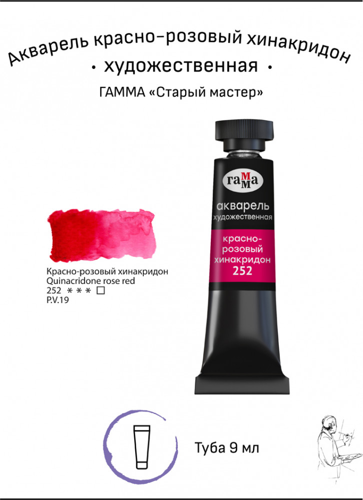 Гамма Акварель художественная, 252 красно-розовый хинакридон