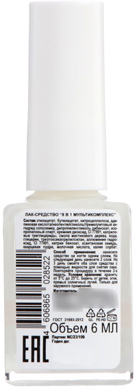 JEANMISHEL Лак-средство для ногтей «8 в 1. Мультикомплекс»+30 глянец эффект салона бесцветный слабый запах