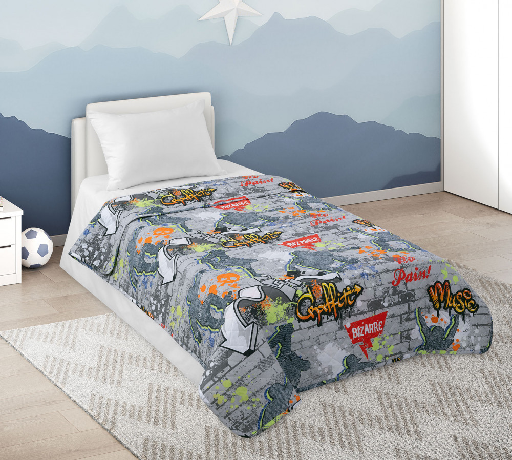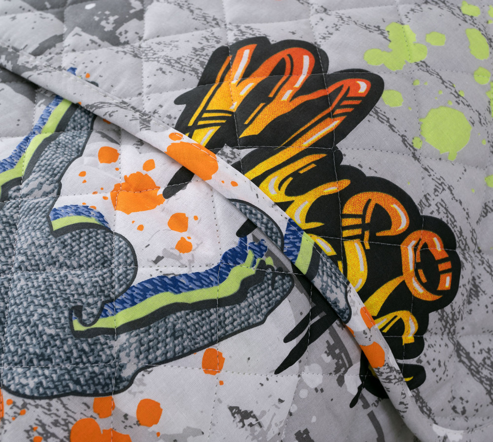 • ткань верха из перкаля. В составе только 100% хлопок. Перкаль — благородная ткань полотняного переплетения повышенной плотности из отборных волокон хлопка, матовая, легкая, приятная на ощупь. Активные красители на 100% безопасные и стойкие: цвета не потускнеют даже после множества стирок. Подходит владельцам домашних питомцев: на покрывале не остается зацепок;