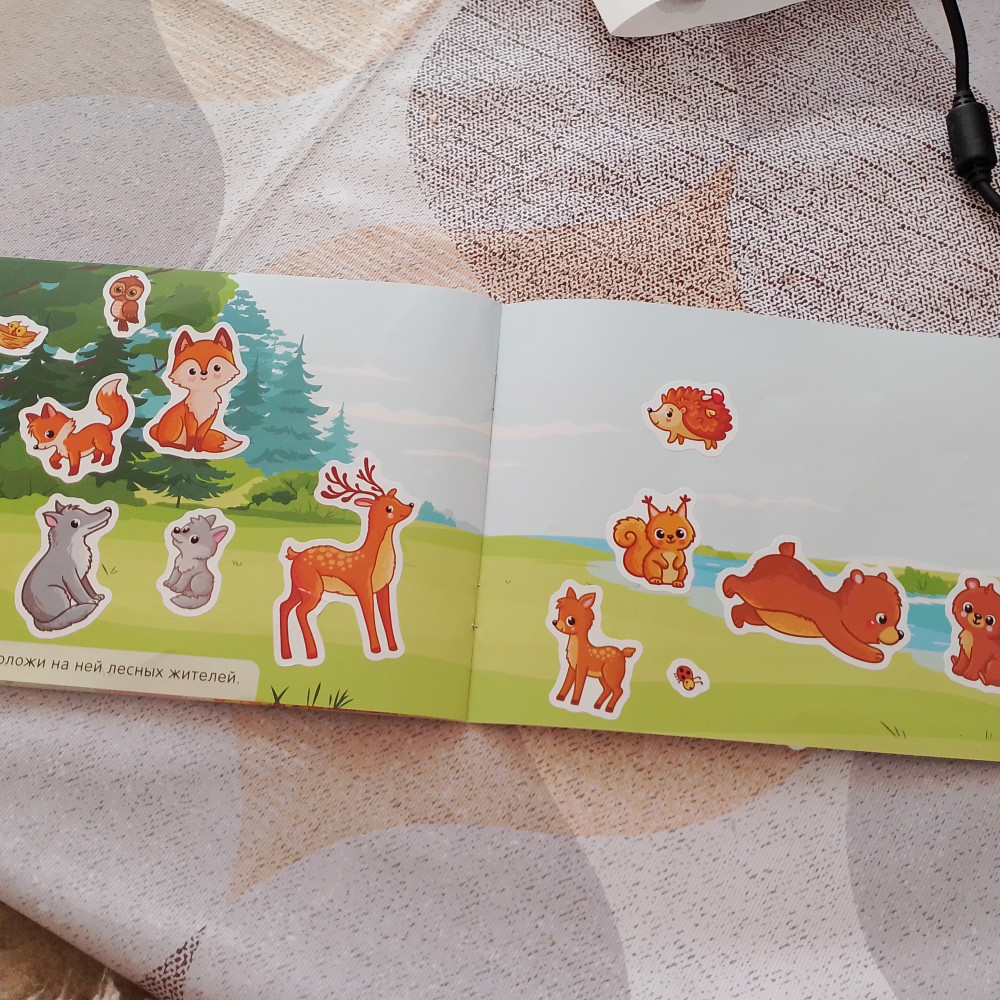 наклейки легко клеятся, хорошо держаться. яркие, красочные. животные все реалистичные. наклеет много. без запаха. ребенку понравилось.