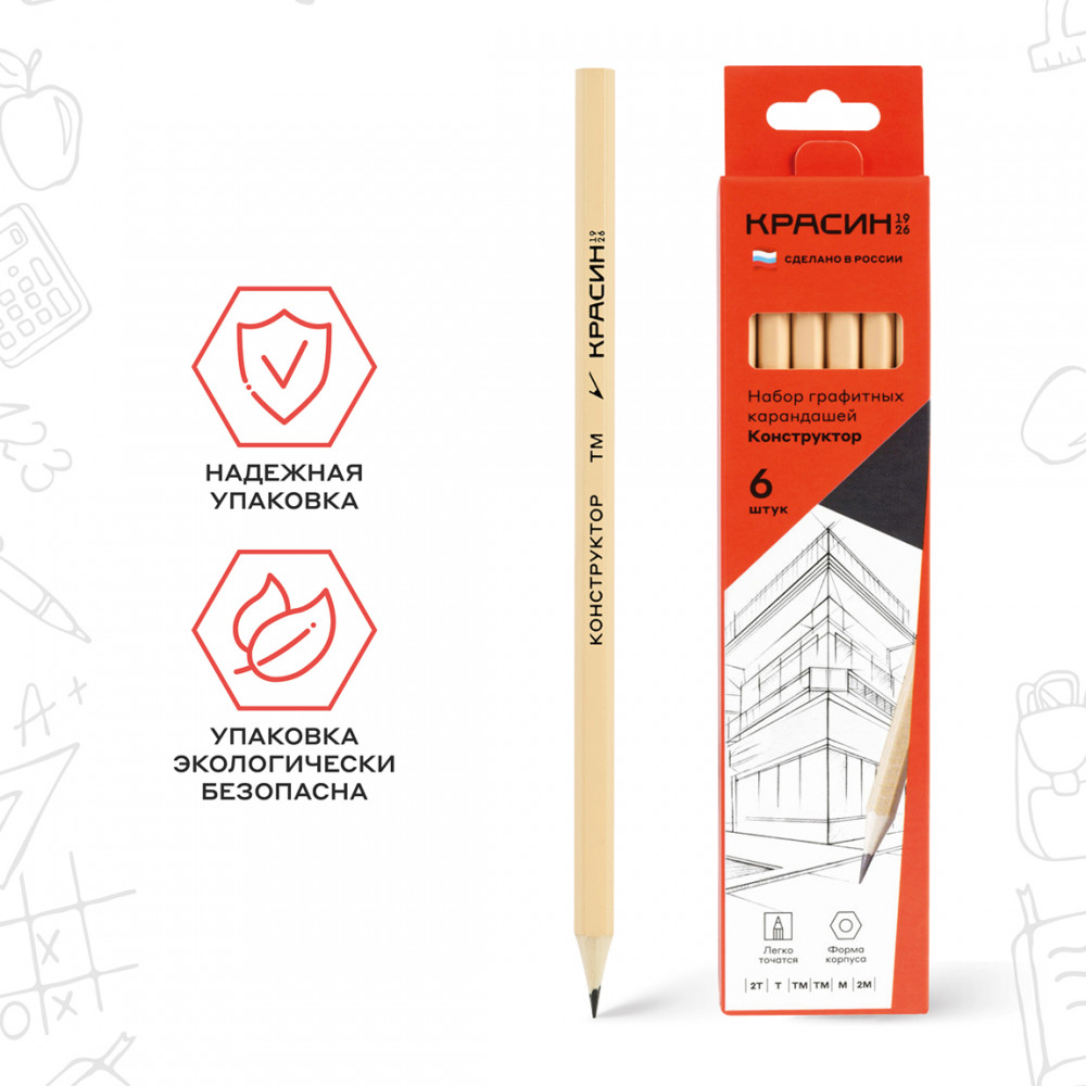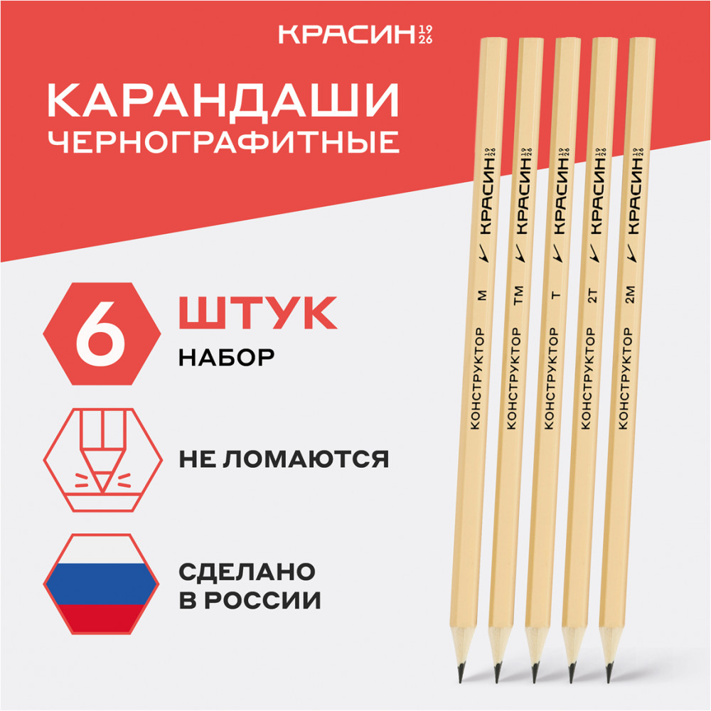 💳 Оплатить за товар можно при получении 🇰🇿 Есть бесплатная доставка по Казахстану от 1 дня 🎁 Копите бонусы с каждой покупки Серия: Конструктор Набор чернографитных карандашей «Красин» серии «Конструктор» 6 штук предназначен для проектно-конструкторских работ любой сложности. В наборе представлены пять степеней твёрдости: 2Т (2Н), Т (Н), ТМ (НВ)-2, М (В), 2М (2В). Корпус выполнен из качественной химически необработанной российской древесины — липы, имеет шестигранное сечение. Высококачественный ударопрочный грифель не крошится и не ломается при заточке. Карандаши поставляются заточенными, имеют диаметр 7 мм и длину 177 мм. Набор упакован в картонную коробку. Карандаши легко и равно затачиваются. |