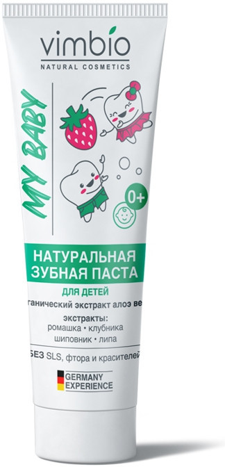 VimBio Натуральная детская зубная паста с клубникой-10% +13