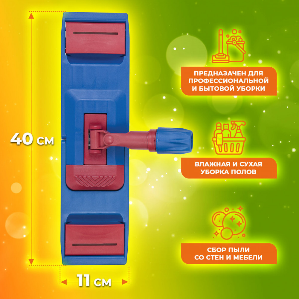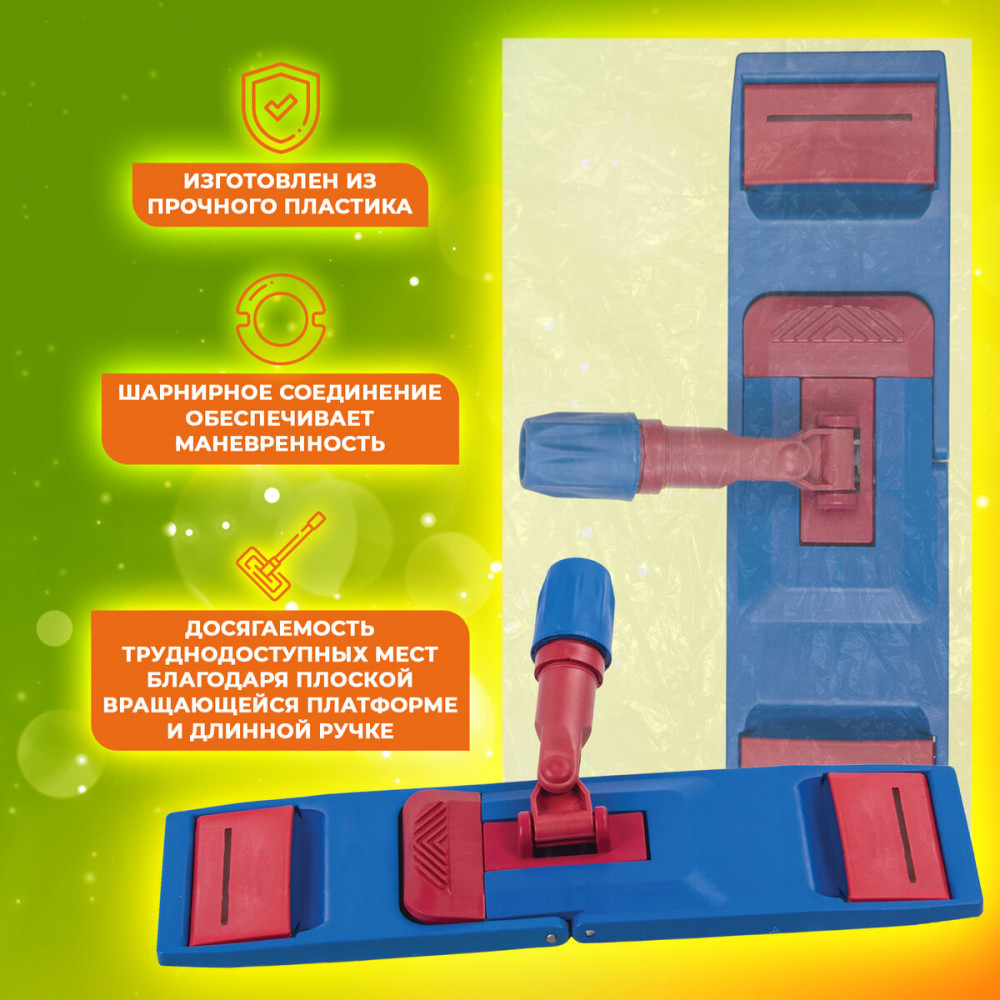 💳 Оплатить за товар можно при получении 🇰🇿 Есть бесплатная доставка по Казахстану от 1 дня 🎁 Копите бонусы с каждой покупки Держатель-флаундер Laima Expert предназначен для профессиональной и бытовой, влажной и сухой уборки полов, сбора пыли со стен и мебели. Используется в комплекте с ручкой и насадкой с карманами и ушками. Подходит для использования в устройствах отжима. Изготовлен из высококачественного пластика. Складывается при нажатии на кнопку. Благодаря плоской вращающейся платформе и длинной ручке швабра-флаундер способна проникнуть в труднодоступные места. Шарнирное соединение. Складной механизм. Размер — 40 × 11 см. |