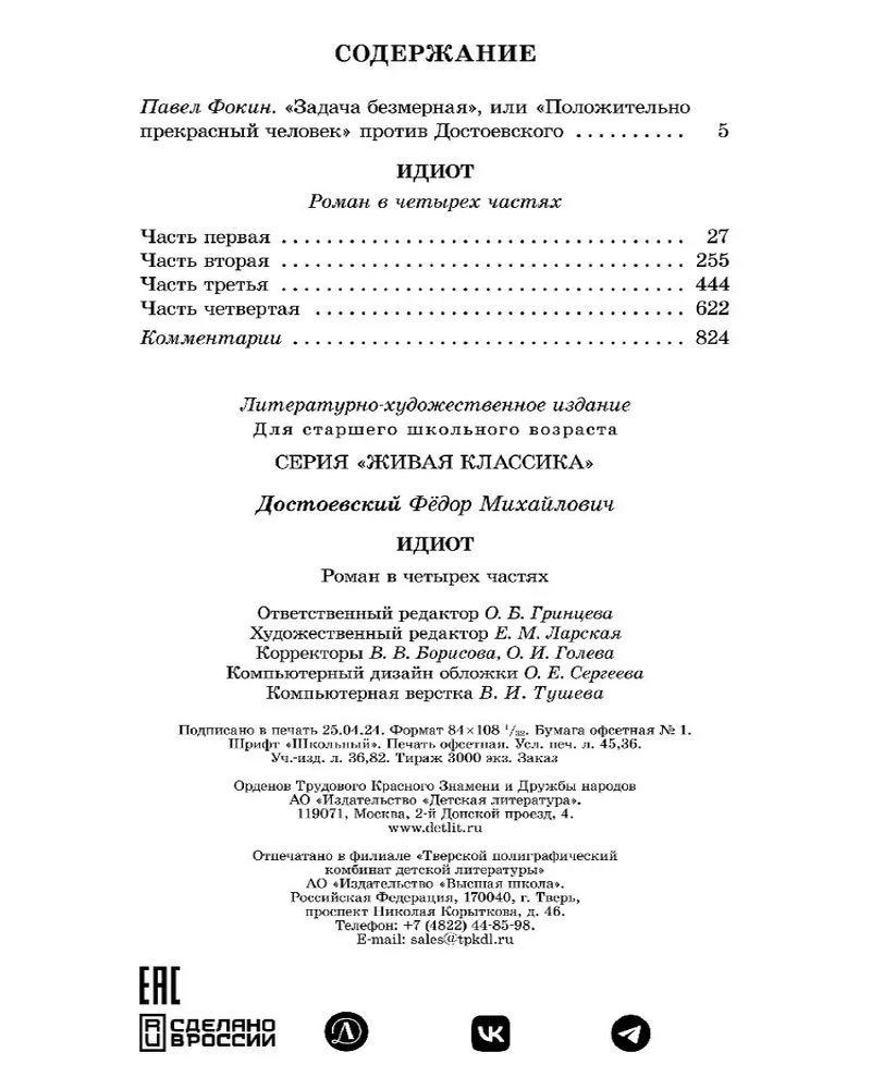 💳 Оплатить за товар можно при получении 🇰🇿 Есть бесплатная доставка по Казахстану от 1 дня 🎁 Копите бонусы с каждой покупки Серия: Живая классика Достоевский, разъясняя замысел произведения, писал своей племяннице: «Главная мысль романа — изобразить положительно прекрасного человека». Лев Николаевич Мышкин — тихий, добрый и скромный, тот самый заглавный «идиот». Ему 27 лет, он сирота и с детства страдает психическим заболеванием, которое лечит в Швейцарии. Но Льву Николаевичу приходится вернуться в Россию из-за смерти своего попечителя, и здесь он знакомится с красавицей Настасьей Филипповной, купеческим сыном Парфёном Семёновичем, помощником генерала Гаврилой Ардалионовичем и другими героями. Их судьбы тесно переплетаются, и Мышкин искренне пытается всем помочь. Он убежден, что любовь и красота могут спасти мир, вот только все эти попытки изначально обречены. |
