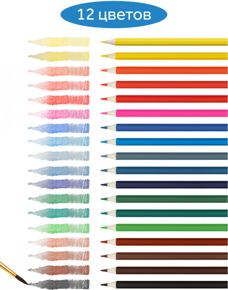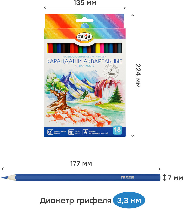 💳 Оплатить за товар можно при получении 🇰🇿 Есть бесплатная доставка по Казахстану от 1 дня 🎁 Копите бонусы с каждой покупки Серия: Классические Цветные акварельные карандаши серии «Классическая» созданы специально для детей, которые уже чувствуют себя настоящими художниками. В наборе 18 ярких и насыщенных цветов. Увеличенный диаметр грифеля — 3,3 мм. Акварельные карандаши «Классические» обладают свойствами цветных карандашей и акварели. Благодаря водорастворимому связующему в составе они отличаются хорошей размываемостью. Тонкотертые пигменты обеспечивают чистые, насыщенные и равномерные цвета. Шестигранный корпус карандаша диаметром 7 мм и длиной 174 мм изготовлен из древесины специальной обработки, и его легко точить. В комплекте — высококачественная кисть, из синтетического волоса. Представлены в удобной упаковке в креативном дизайне. |