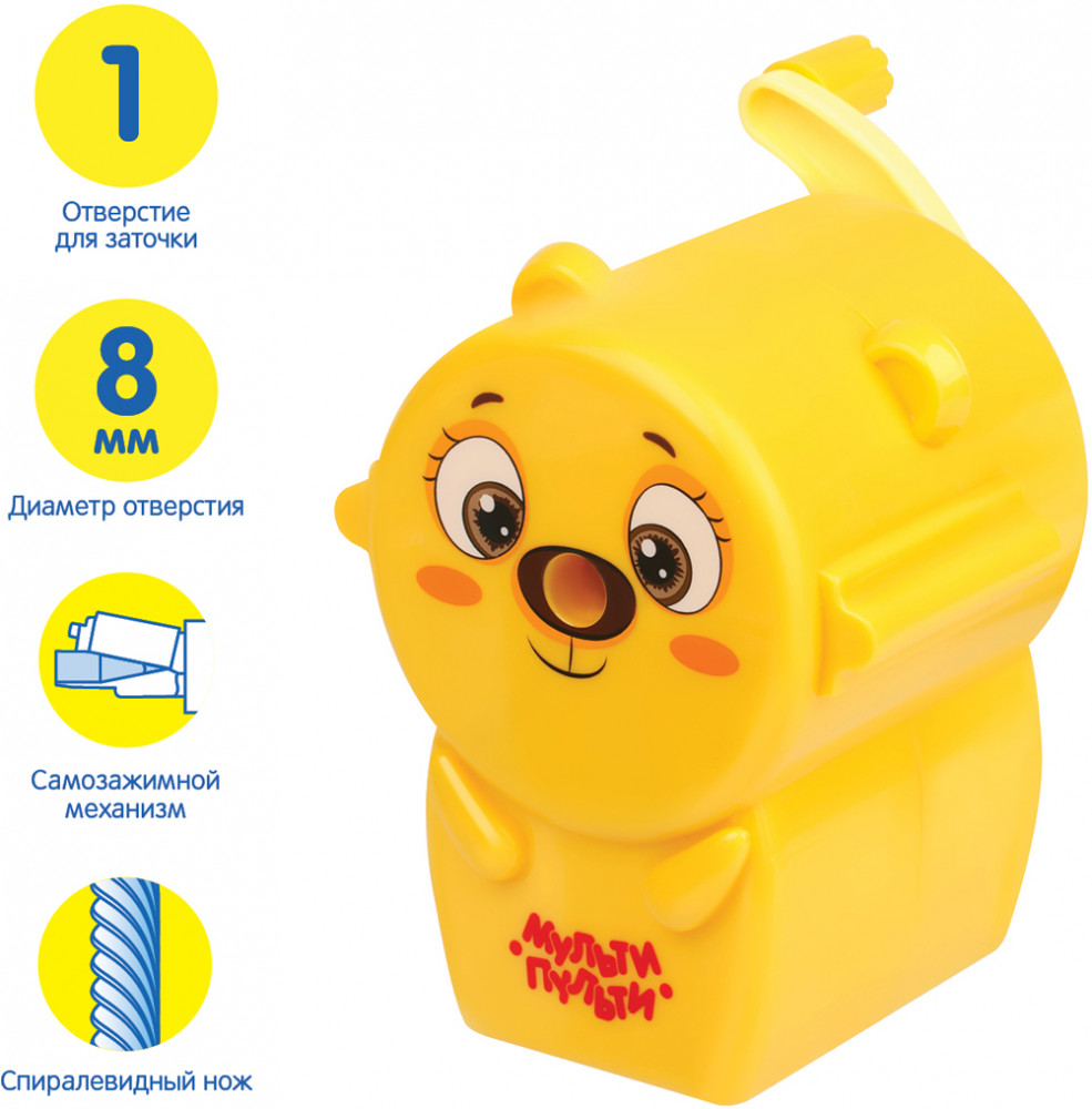 💳 Оплатить за товар можно при получении 🇰🇿 Есть бесплатная доставка по Казахстану от 1 дня 🎁 Копите бонусы с каждой покупки Механическая точилка Мульти-Пульти «Медвежонок» отлично справится с заточкой карандашей. Точилка содержит отверстие для заточки стандартных карандашей диаметром до 8мм и снабжена объемным контейнером для стружки. Спиралевидный нож из высококачественной стали обеспечит легкую заточку. Обратите внимание, что точилка обладает самозажимным механизмом, достаточно просто вставить карандаш до упора в отверстие, сделать несколько оборотов и карандаш будет заточен. Инструкция по использованию точилки Вы сможете найти на цветном вкладыше упаковки. Отличный цвет, форма точилки и качество заточки карандашей непременно порадует своего владельца. |