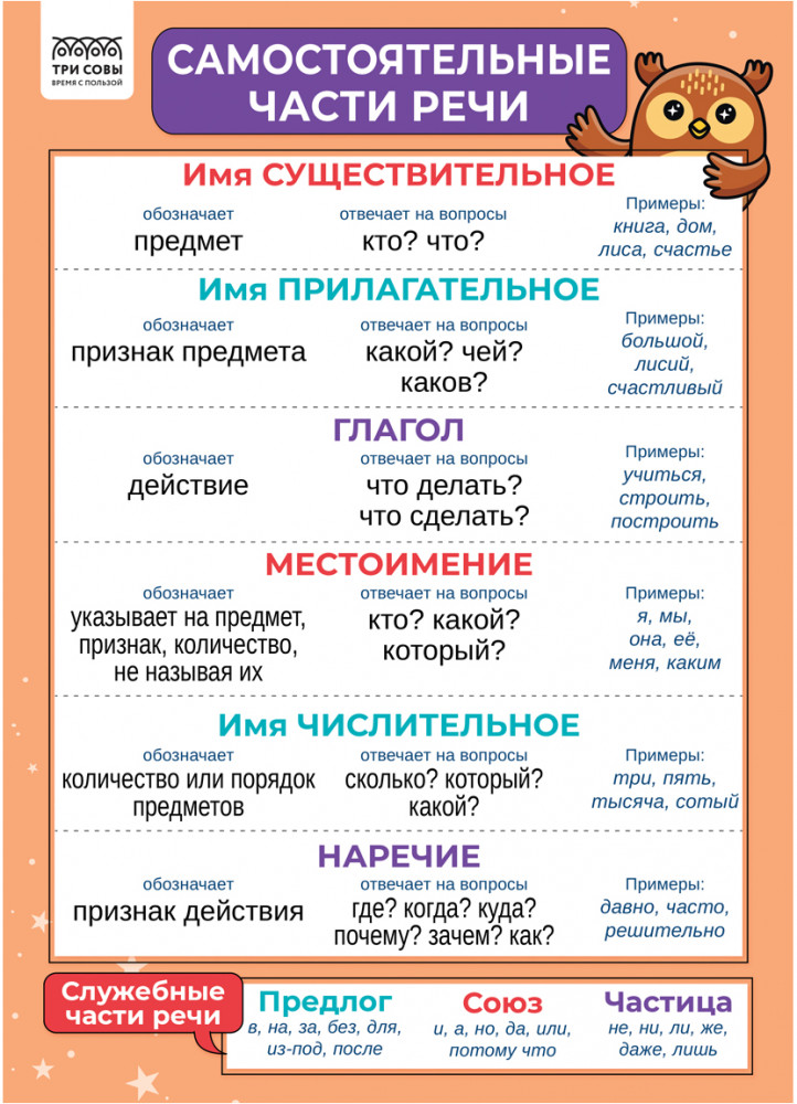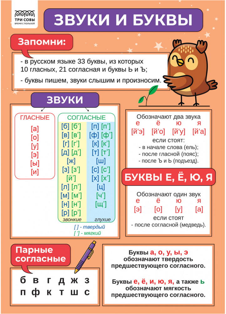 💳 Оплатить за товар можно при получении 🇰🇿 Есть бесплатная доставка по Казахстану 🎁 Копите бонусы с каждой покупки Набор обучающих плакатов бренда «Три совы» — незаменимый помощник для младшего школьника. В данный набор входит 4 основных плаката с информацией, которая необходима в начальных классах по русскому языку: состав слова и разбор слова по составу, звуки и буквы, самостоятельные части речи, члены предложения. Размер изделий — 210 × 297 мм, формат — А4, материал — плотный картон. Наглядное пособие помогает упорядочить полученные знания и закладывает базу для дальнейшего обучения. Плакаты «Три совы» можно использовать дома и в начальной школе. «Три совы» — время с пользой! |