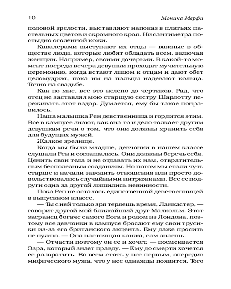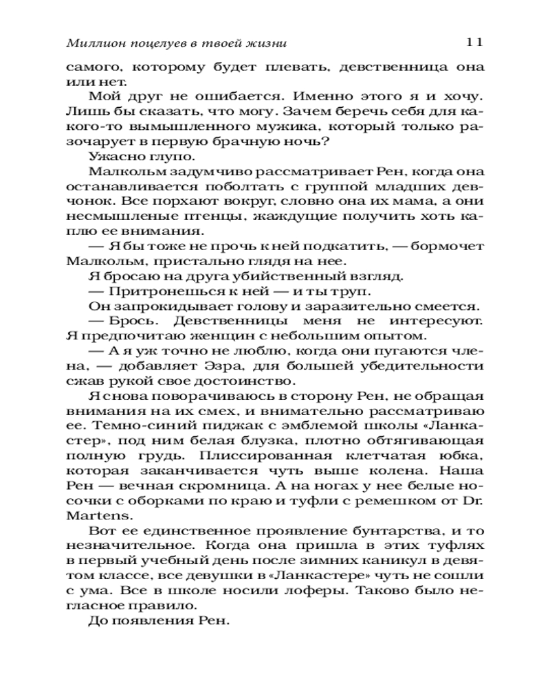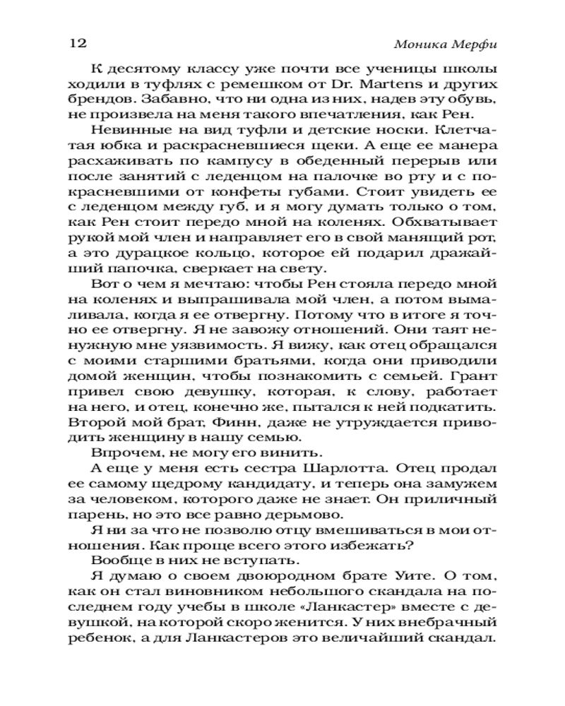 💳 Оплатить за товар можно при получении 🇰🇿 Есть бесплатная доставка по Казахстану от 1 дня 🎁 Копите бонусы с каждой покупки Серия: LAV. Романтика Рен Бомонт многогранна. Красива. Умна. Мила. Невинна. Все в частной школе «Ланкастер» ее обожают. Хотят с ней дружить. И только я вижу, какая Рен на самом деле. Маленькая вышколенная девочка, которая так старательно подавляет чувства, что, похоже, вот-вот лопнет. Она считает себя выше всех нас. Даже выше меня. Я не должен испытывать к ней влечение. Она не в моем вкусе. Но однажды нам приходится заняться совместным учебным проектом и понять, что у нас, возможно, намного больше общего, чем мы думали. Вскоре я осознаю, что полностью одержим. Я сделаю ради этой девушки все, лишь бы она в меня влюбилась. Все что угодно. |
