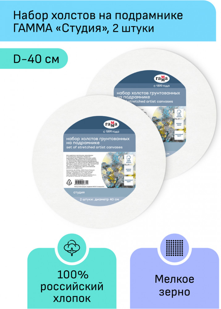 💳 Оплатить за товар можно при получении 🇰🇿 Есть бесплатная доставка по Казахстану от 1 дня 🎁 Копите бонусы с каждой покупки Серия: Студия Набор холстов на подрамнике круглой формы «Гамма» серии «Студия» выполнен из натурального полотна — 100% хлопок, мелкое зерно, акриловый грунт. В наборе 2 холста диаметром 40 см. Холст — идеальная основа для работы масляными, акриловыми и темперными красками. Подрамник изготовлен из МДФ с буртиком. Изделие идеально подойдет студентам художественных школ и училищ, начинающим и профессиональным художникам. |