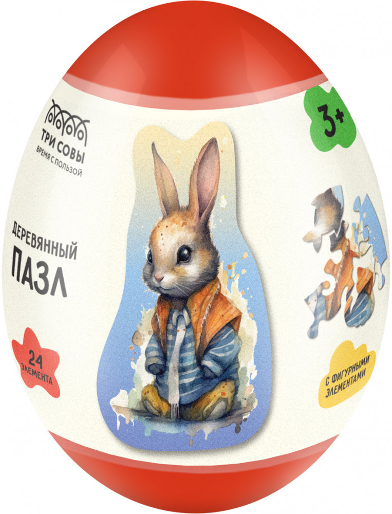 Три совы Пазл деревянный в яйце «Заяц»-20% +38
