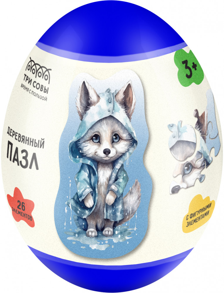 Три совы Пазл деревянный в яйце «Волчонок»-20% +38