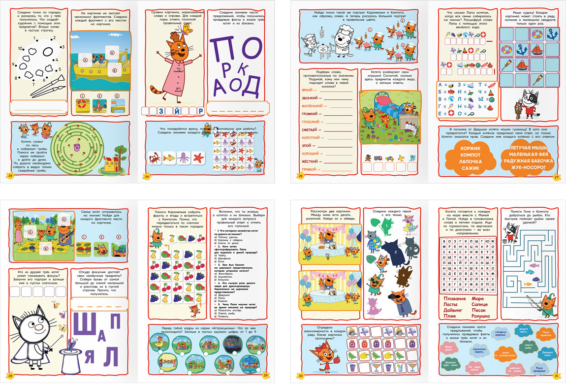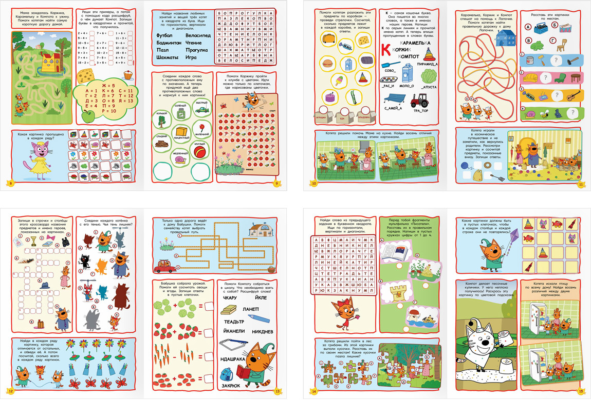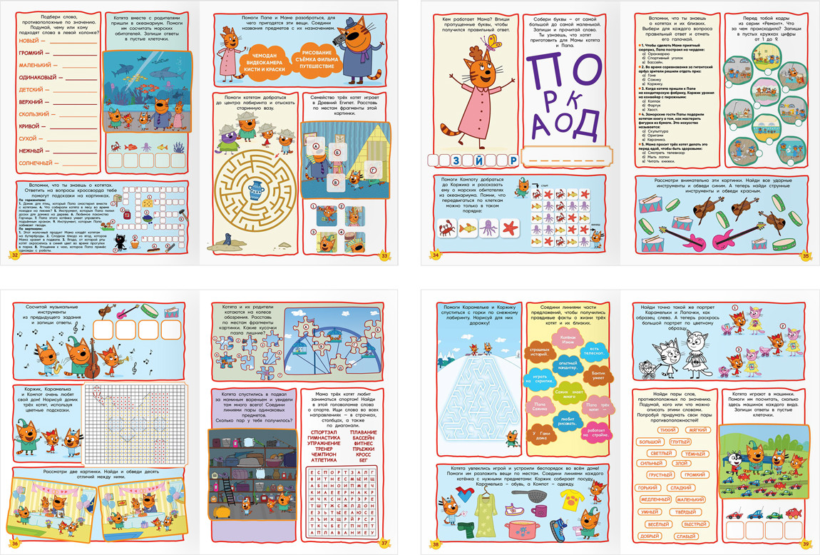 Три совы Книжка-задание «100 и 1 головоломка»В данный момент этот товар отсутствует в продаже. Возможно, у нас найдется аналогичный или похожий товар здесь. Серия: Три кота Развивающая книжка «100 и 1 головоломка. Три кота» от бренда «ТРИ СОВЫ» подходит для детей от 6 лет. Она поможет весело провести время, развить мышление и внимание. Формат — А4. Книжка представлена в мягкой обложке из плотной мелованной бумаги. Она состоит из 48 страниц на скрепке с цветными иллюстрациями. Внутри находятся задания с любимыми персонажами: лабиринты, чайнворды, кроссворды, ребусы, шарады, задания на счёт, судоку. Помимо этого, ребёнку предстоит найти отличия, лишние и спрятанные элементы, продолжить ряд, расшифровать фразу и не только. |