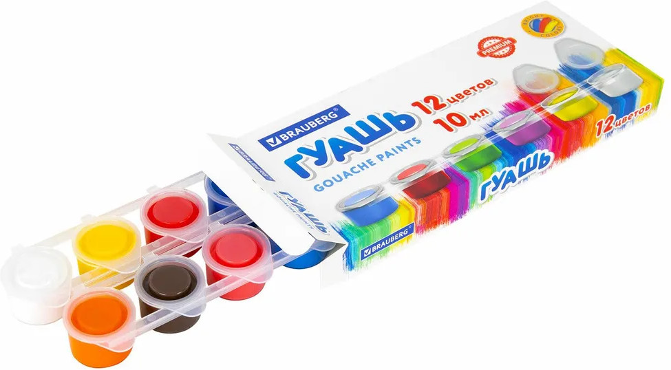 💳 Оплатить за товар можно при получении 🇰🇿 Есть бесплатная доставка по Казахстану от 1 дня 🎁 Копите бонусы с каждой покупки Серия: Premium Гуашь хорошо наносится на бумагу, картон, дерево, стекло, керамику. Идеальная краска для начинающих художников. В наборе 12 ярких и насыщенных цветов: белый, желтый, красный, синий, зеленый, черный, оранжевый, коричневый, розовый, голубой, светло-зеленый, фиолетовый. Краски полностью безопасны в использовании, не токсичны и не имеют резкого запаха. Гуашь обладает высокой светостойкостью и укрывистостью, легко размывается водой, хорошо наносится, без труда удаляется с рук и одежды. Краски находятся в пластмассовых герметичных баночках, которые скреплены в блок-тару. Объем каждой баночки равен 10 мл. Общий объем блок-тары — 120 мл. |