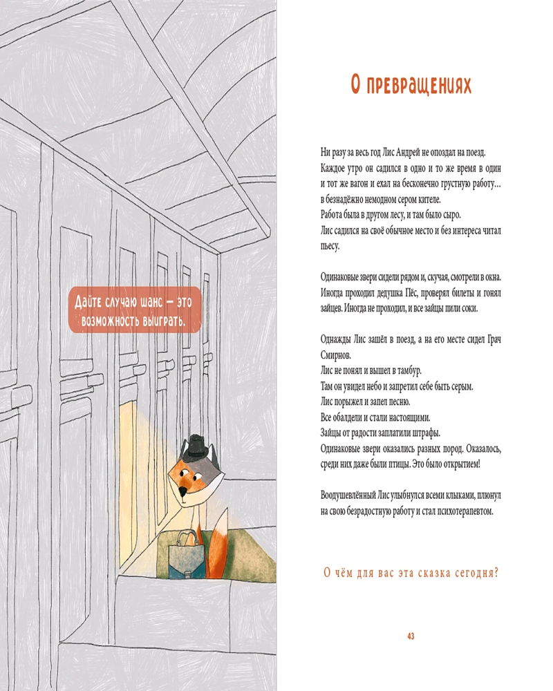 Может показаться удивительным, но ответы на множество ваших вопросов уже живут внутри вас, а сказки лишь помогают их осознавать и формулировать. «Лисосказки» — сборник необычных психологических сказок, прочтение которых расширяет грани самоосознания и взросления. Это не просто сказки, это зеркало вашей души. Погружаясь в каждую историю, вы обнаруживаете отражение вашего внутреннего мира и возможностей для его изменения. Герои сказок — не обычные Лисы, а полноценные персонажи, которые живут, ошибаются, ищут и находят. Каждая сюжетная линия и персонажи, воплощённые в Лисах, отражают глубокие человеческие эмоции и конфликты, предоставляя не только увлекательное чтение, но и психологическую поддержку. |