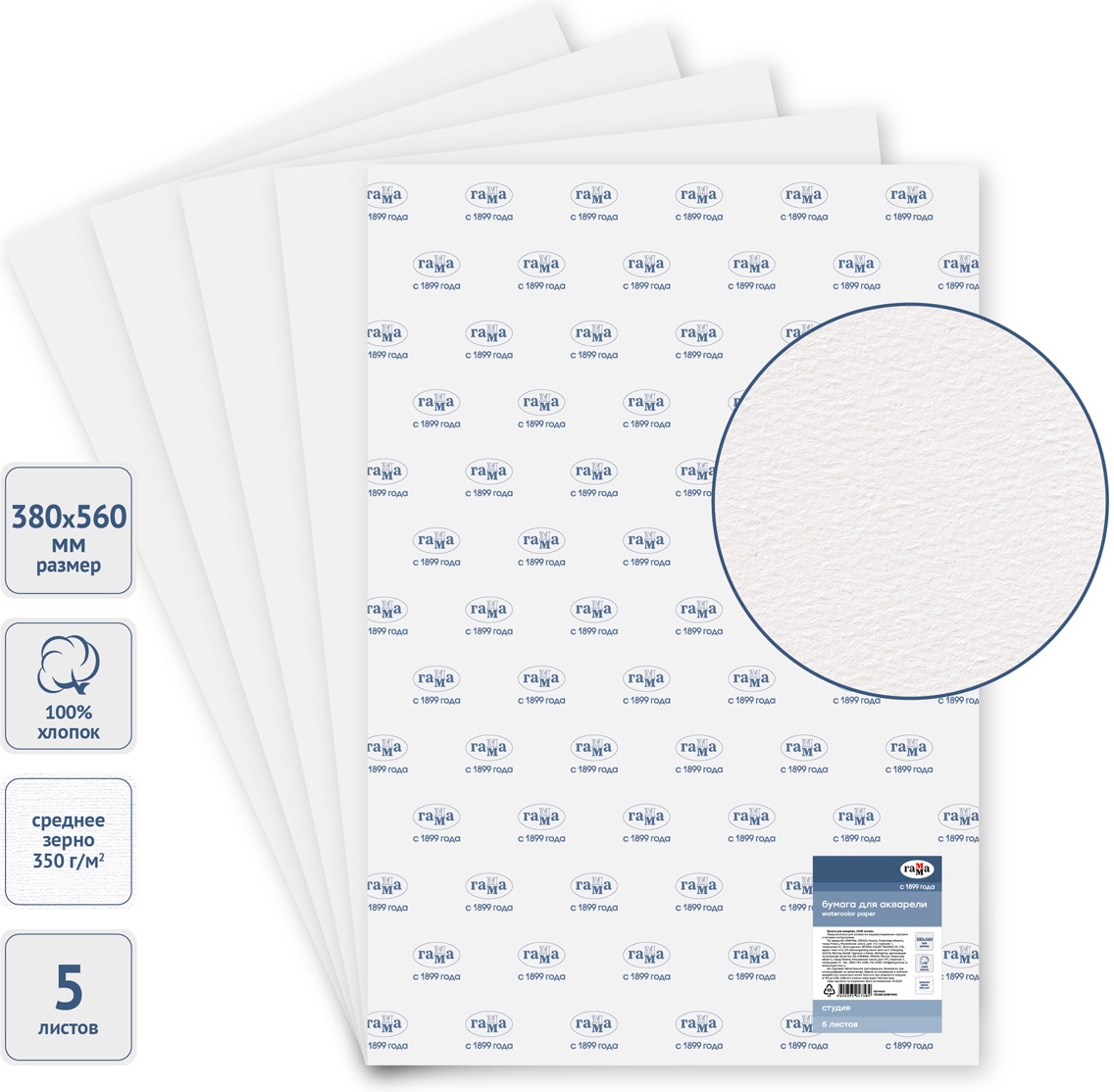 💳 Оплатить за товар можно при получении 🇰🇿 Есть бесплатная доставка по Казахстану от 1 дня 🎁 Копите бонусы с каждой покупки Серия: Студия Бумага для акварели «Гамма» серии «Студия» выполнена из 100 % хлопка без использования кислот и отбеливателей. Зерно – среднее, плотность 350 г/м2. Размер – 38 × 56 см. В упаковке 5 листов. |