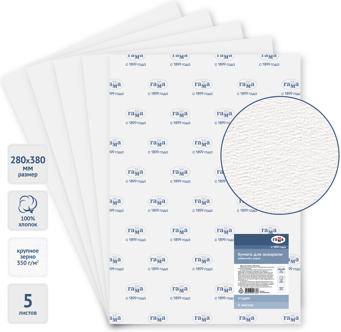 💳 Оплатить за товар можно при получении 🇰🇿 Есть бесплатная доставка по Казахстану от 1 дня 🎁 Копите бонусы с каждой покупки Серия: Студия Бумага для акварели «Гамма» серии «Студия» выполнена из 100 % хлопка без использования кислот и отбеливателей. Зерно — крупное, плотность 350 г/м2. Размер — 28 × 38 см. В упаковке 5 листов. |