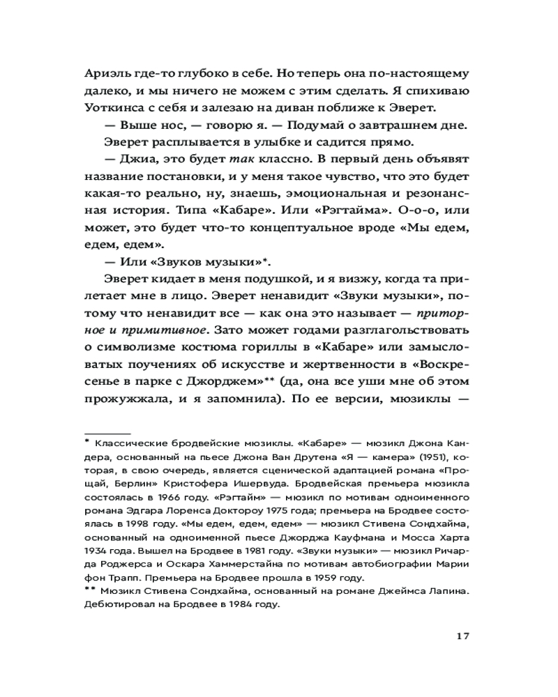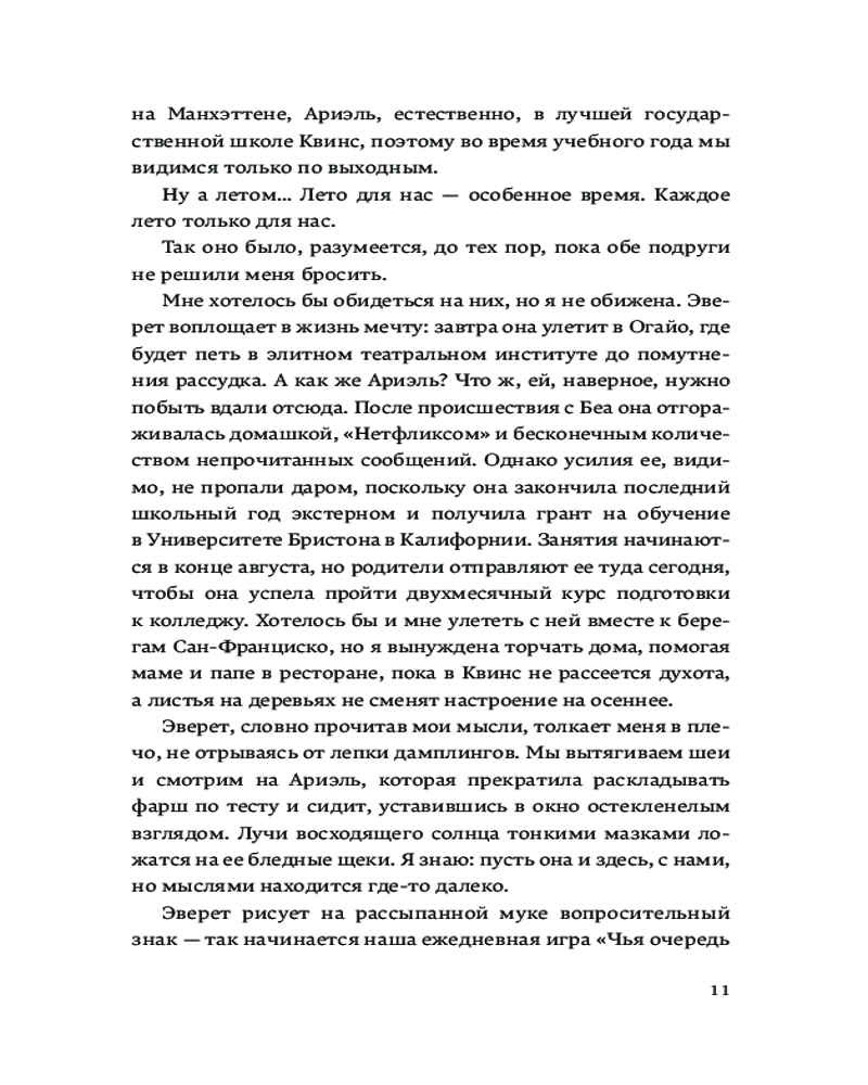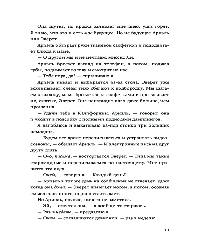 💳 Оплатить за товар можно при получении 🇰🇿 Есть бесплатная доставка по Казахстану 🎁 Копите бонусы с каждой покупки Джиа Ли, Ариэль Ким и Эверет Хоанг — лучшие подруги, и они неразлучны. Но эти летние каникулы они впервые проведут порознь. Эверет, начинающая звезда Бродвея, надеется получить главную роль в театральной постановке в Огайо, но вскоре понимает, что для этого требуется не только талант. Ариэль летит в Сан-Франциско за престижной стипендией, хотя сердцем она в Южной Корее, где в прошлом году погибла ее сестра. А Джиа остается в Нью-Йорке, чтобы помогать родителям в их семейном ресторане, который когда-нибудь перейдет ей по наследству. Но Джиа мечтает совсем о другом. |
