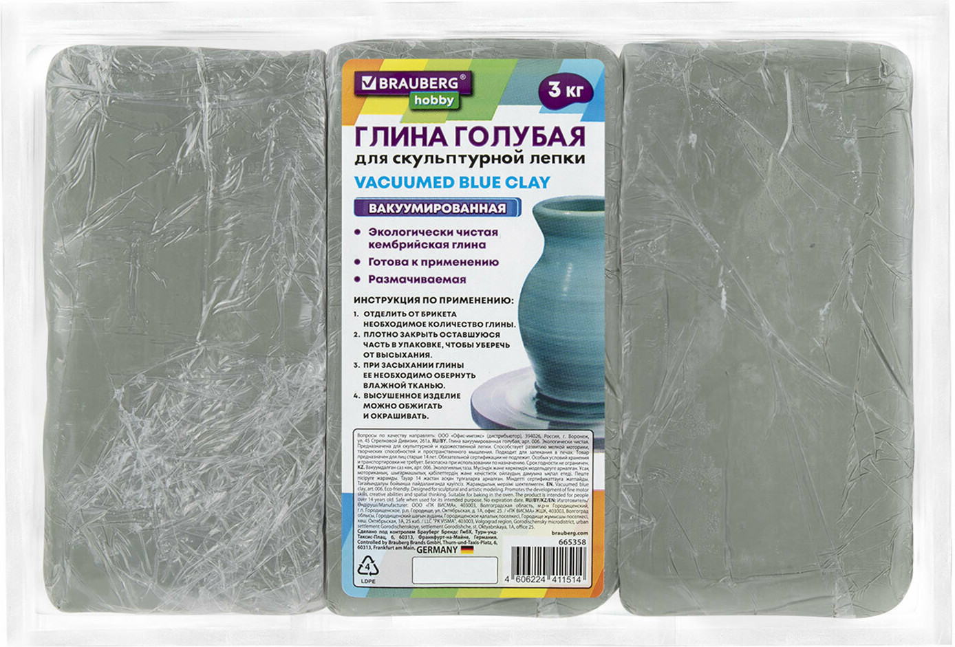 Экологически чистая кембрийская глина, добываемая в России на Чкаловском месторождении, идеально подойдет для художественной и скульптурной лепки. Способствует развитию мелкой моторики, творческих способностей и пространственного мышления. Безопасный и экологичный продукт, не вызывает аллергической реакции. Благодаря самозатвердевающему свойству глины изделия из нее сохнут самостоятельно без участия высоких температур. Для придания изделию стабильности рекомендуется обжиг. Глина представлена в голубом цвете, являющемся наиболее востребованным. Хранить неиспользуемую часть глины в полиэтилене или обернуть мокрой тканью для предотвращения ее засыхания. В случае засыхания глину также необходимо обернуть мокрой тканью до момента ее размягчения.