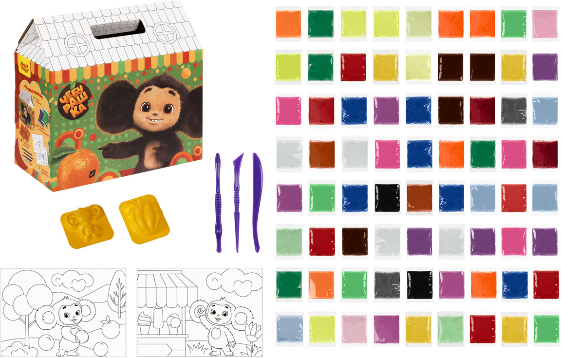 Большой набор для лепки «Мульти-Пульти» серии «Чебурашка» создан для детей от 3-х лет и отлично подходит для развития творческих способностей. В него входят 72 брикета воздушного пластилина российского производства, две раскраски с Чебурашкой, 2 формочки, 3 стека из пластика для проработки деталей.