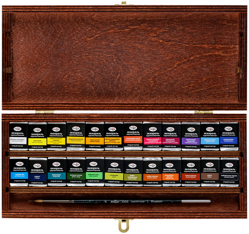 💳 Оплатить за товар можно при получении 🇰🇿 Есть бесплатная доставка по Казахстану от 1 дня 🎁 Копите бонусы с каждой покупки Серия: Старый мастер Набор художественной акварели Гамма из серии «Старый мастер» состоит из 24 цветов в кюветах 2,6 мл. Подарочный набор представлен в деревянном пенале цвета темной вишни. Профессиональная акварель серии «Старый мастер» разработана в собственной исследовательской лаборатории завода. Краски изготовлены на основе органических и неорганических пигментов и гуммиарабика высшего качества. Цвета акварельных красок звонкие, чистые, прозрачные. Краски высокопигментированные, интенсивные, легко набираются на кисть. С помощью акварельных красок из серии «Старый мастер» можно писать в различных техниках, например, лессировка, по- мокрому, заливка, сухая кисть. Каждая кювета упакована в фольгу. Маркировка светостойкости, колор-индекса и укрывистости указана на упаковке каждой кюветы. |
