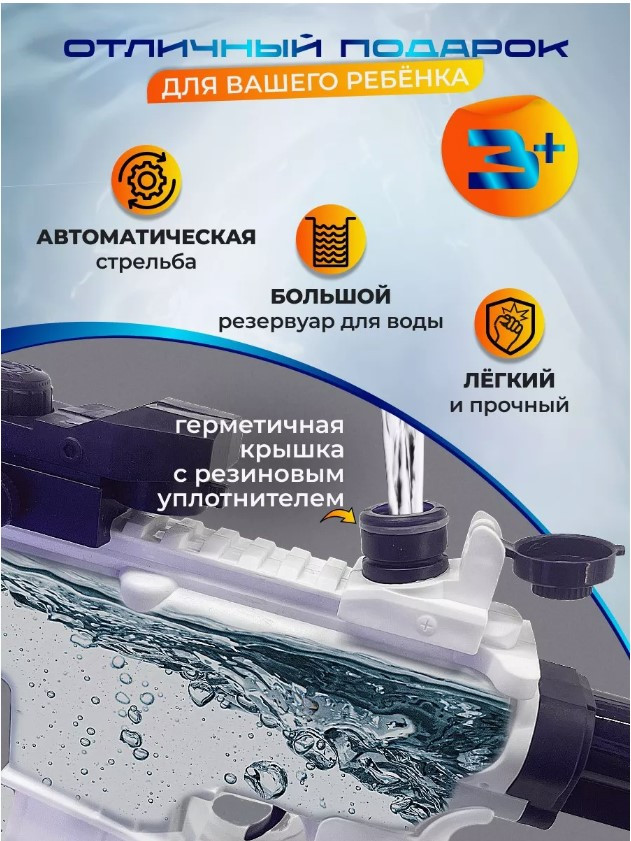 Автоматический водяной пистолет-бластер — идеальный способ для детей развлечься на пляже, в бассейне, на улице возле дома или во время пикника, он отлично охладит в жаркую погоду. Он легок в использовании и позволяет детям легко управляться с оружием. Бластер оснащен мощным электрическим двигателем, который обеспечивает быструю и непрерывную стрельбу без необходимости накачивания воды перед каждым выстрелом. Этот водяной пистолет-бластер не только забавный, но и полезный для детей. Игры с водой помогают детям развивать координацию, воображение, а также увеличивает здоровье.