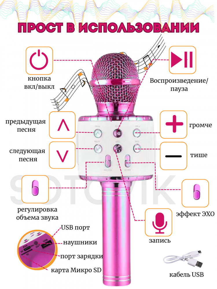 💳 Оплатить за товар можно при получении 🇰🇿 Есть бесплатная доставка по Казахстану от 1 дня 🎁 Копите бонусы с каждой покупки Микрофон детский с крыльями отлично подойдет на подарок девочке от 3 года. Радиомикрофон беспроводной оснащен всеми современными функциями и совершенно не уступают профессиональному бепроводному микрофону для сцены. Микрофон имеет стильный яркий цвет и крылья единорога для девочки. Качественная сборка позволяет наслаждаться пением и чувствовать себя суперзвездой. Микрофон детский для девочек игрушка и не только имеет 4 функции голоса. Благодаря легкой настройке вы быстро сможете подключить его к телефону или планшету. Также можно установить обычную флешку в корпус и просто слушать музыку. Микрофон караоке с колонкой отличное решение которое скрасит вечер в приятной компании друзей. Однозначно этот классный крутой девайс предназначен для тех, кто хочет стать звездой любой вечеринки. Идеально подходит на подарок девушке, девочке, маме, сестре и подруге. |