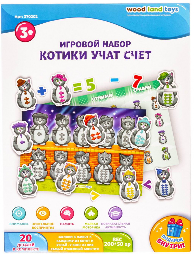 WoodLandToys Набор игровой «Котики учат счёт»В данный момент этот товар отсутствует в продаже. Возможно, у нас найдется аналогичный или похожий товар здесь. Игровой набор умело познакомит вашего ребёнка с цифрами, станет отличным помощником в освоении им навыка счёта и решении простых математических действий. Перед тем, как начать игру, рассмотрите вместе с ребёнком каждого из котят, обсудите их отличия, а затем разложите их в хаотичном порядке и предложите ему найти для каждого своё место путём наложения. Обращайте внимание малыша на то, что котята прячут в себе разное количество рыбок. Предложите ребёнку найти нужный домик для каждого котёнка на первой стороне карточки. На обратной стороне карточки расположен второй вариант игры более сложный. После того, как ребёнок выучил все цифры и освоил навык счёта, предложите ему познакомиться с математическими примерами. Малышу предстоит найти верного котёнка для каждого из примеров. Эта игра поможет Вашему ребёнку в игровой форме освоить операции сложения, вычитания и сравнения, а тематические детали подарят лишь положительные эмоции! В дополнение к игре в комплект включён набор фигур в виде цифр и математических знаков для дополнительной тренировки полученных математических знаний. Математика это весело и интересно, если играть вместе с нами! |