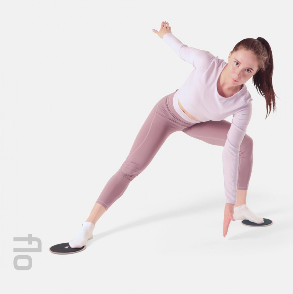 Не скользит по полу в фитнес центре и по йоговскому коврику. В домашних тренировках хорошо по ковру.