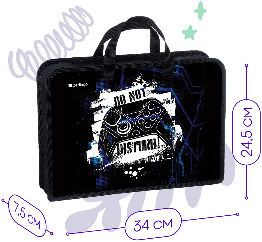 Berlingo Папка с ручками «Do not disturb»В данный момент этот товар отсутствует в продаже. Возможно, у нас найдется аналогичный или похожий товар здесь. Папка с ручками на молнии для тетрадей Berlingo формата А4 станет стильным помощником в учёбе и предназначено для хранения документов. Изделие имеет одно отделение и изготовлено из высококачественного пластика. Края папки имеют тканевую окантовку. Застежка-молния сверху надежно защищает содержимое от грязи и влаги. Наличие ручек обеспечивает удобную транспортировку. Оформление папки непременно понравится ребенку. |