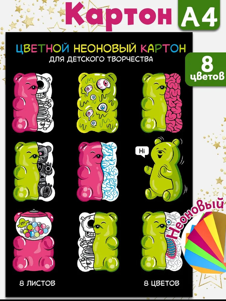 Феникс + Картон цветной неоновый «Желейные мишки»-40% +8