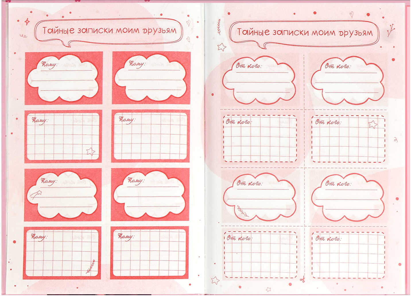 Дневник на резинкеДневник в клеткуФитнес дневникБлокнот с замкомДневник с замкомДневник для записейДневник для путешествийДневник в точкуЛичный дневник в твёрдой обложкеАнкета с опросникомАнкета с тестамиДневник-анкета для друзейАнкета для друзейДневник с датамиАнкета-дневникДневник с кармашкомДневник для девочекДневник читательский