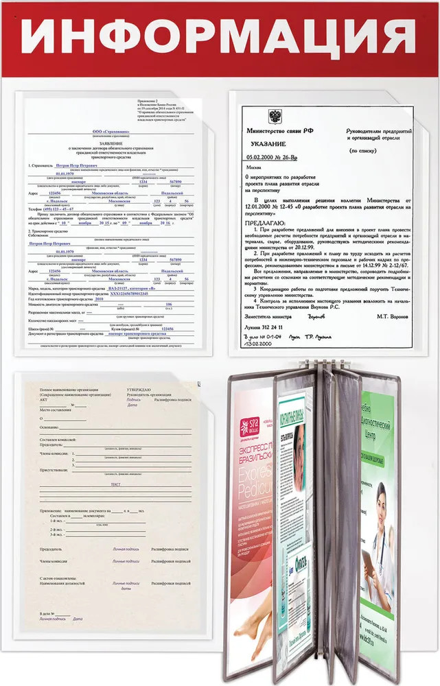 💳 Оплатить за товар можно при получении 🇰🇿 Есть бесплатная доставка по Казахстану от 1 дня 🎁 Копите бонусы с каждой покупки Серия: Standard Доска-стенд «Информация» предназначена для ознакомления сотрудников или клиентов организации с необходимой информацией. Имеет 3 плоских кармана для листов формата А4 и 5 демопанелей аналогичного формата. Материал основания — белый вспененный ПВХ. Поставляется с элементами крепежа в комплекте. |