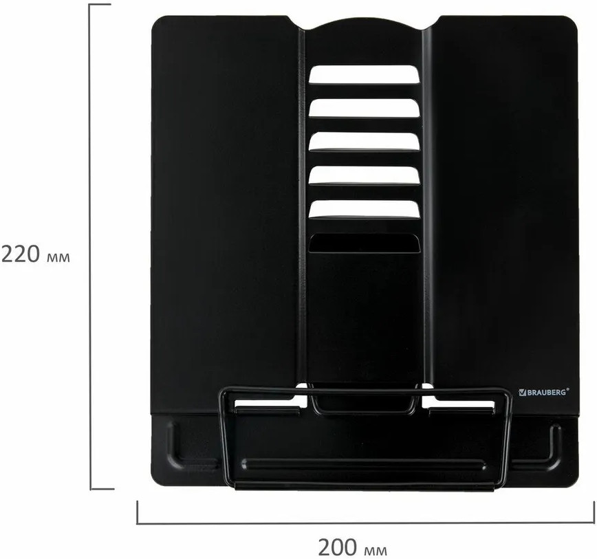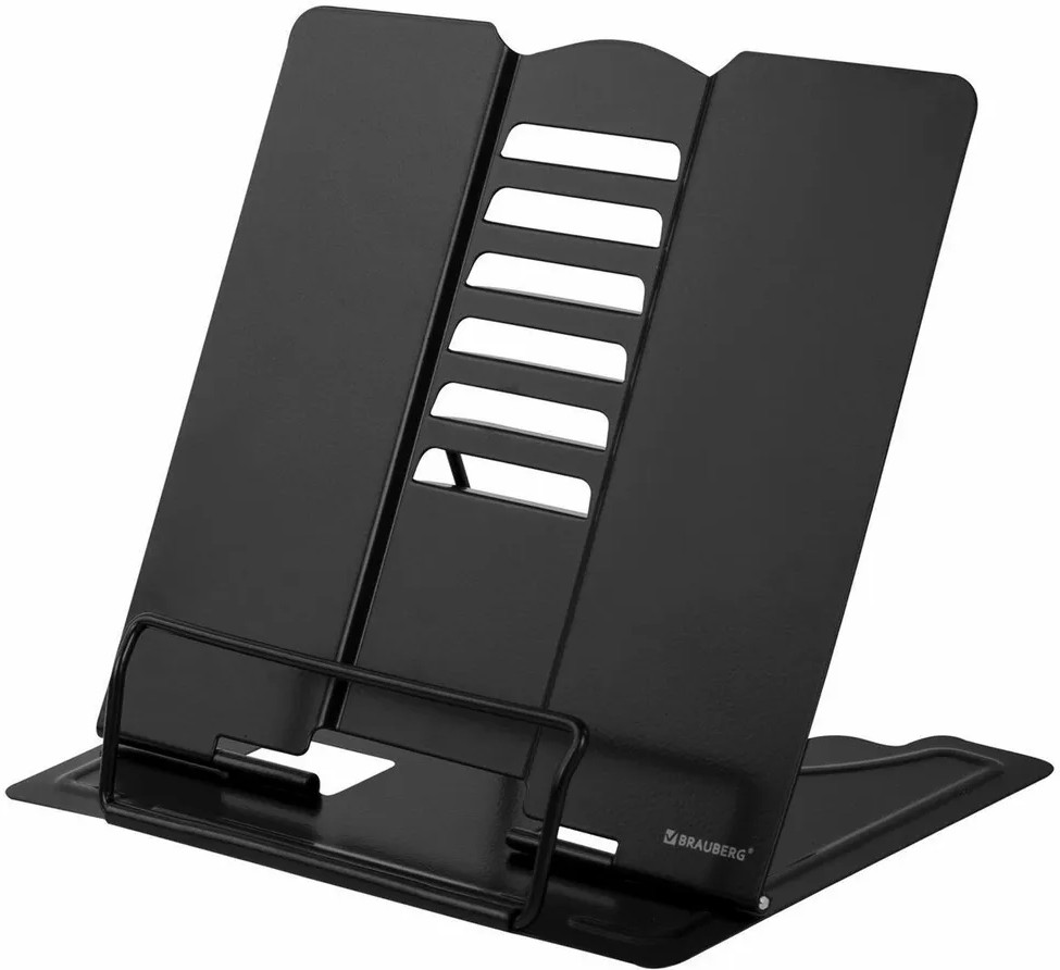 Подставка для книг и учебников «Brauberg» станет незаменимым помощником для школьников и любителей чтения. Использование подставки для книг способствует формированию правильной осанки. Яркий дизайн станет изюминкой в любом интерьере. Подставка полностью выполнена из металла, поэтому отлично подойдет для надежной фиксации тяжелых и объемных учебных материалов и книг. Оригинальный дизайн и необычная форма подставки понравится школьнику любого возраста. Регулируемый угол наклона обеспечивает удобство при работе с текстом, облегчает чтение и выполнение домашней работы. На нижней части подставки предусмотрены противоскользящие элементы.