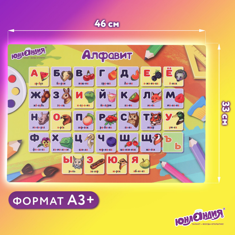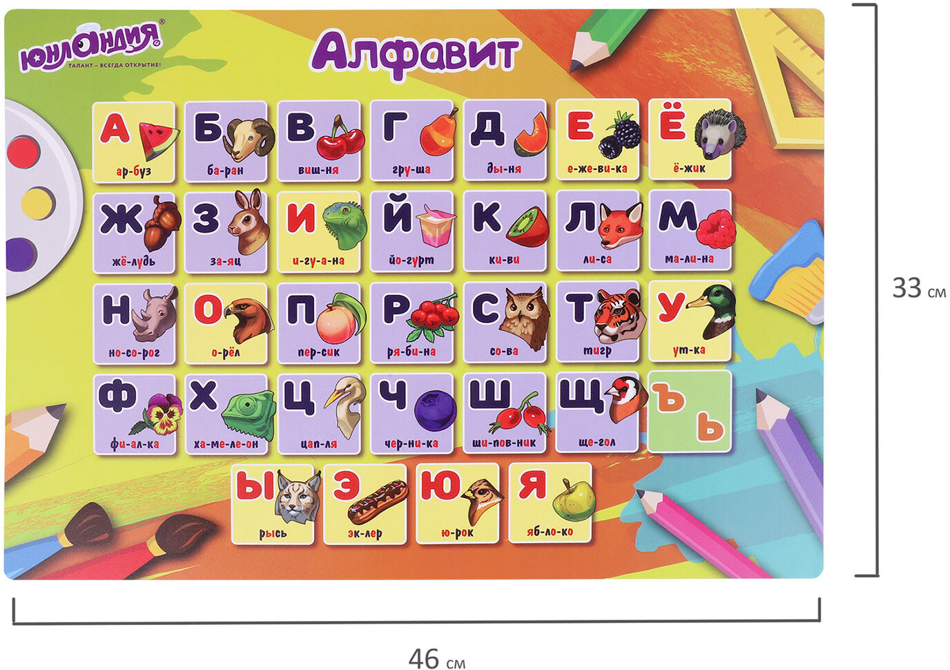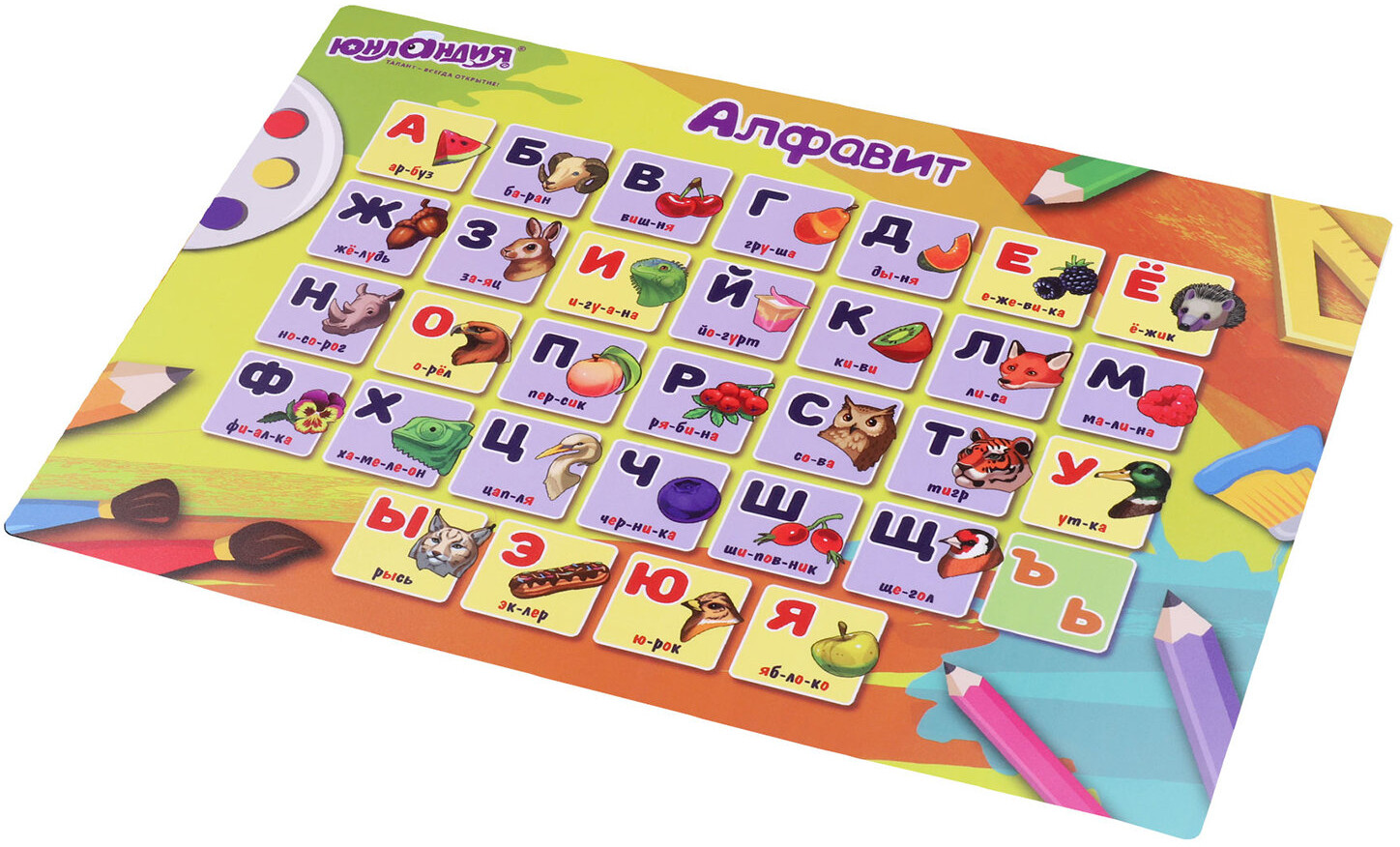 💳 Оплатить за товар можно при получении 🇰🇿 Есть бесплатная доставка по Казахстану от 1 дня 🎁 Копите бонусы с каждой покупки Настольное покрытие Юнландия «Алфавит» сохранит стол в чистоте и порядке, отлично подойдет для занятий творчеством, лепкой и рисованием. Обеспечит удобство во время письма. Является хорошей защитой для стола от разного рода повреждений. Предназначено для многоразового использования. Изготовлено из прочного пластика. Легко очищается. Настольное покрытие не съезжает и не деформируется при работе. Практичная прямоугольная форма и увеличенный размер 46 × 33 см позволяют закрыть всю необходимую рабочую поверхность. |
