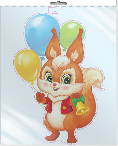 Плакат вырубной «Белочка с шарами и колокольчиком»+26