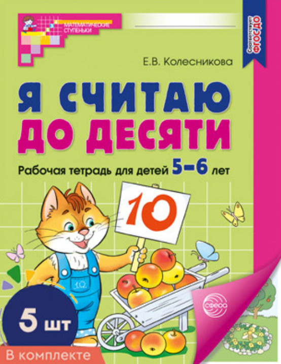 Я считаю до десяти. Рабочая тетрадь для детей 5-6 лет. Цветная. Комплект из 5 книг+378