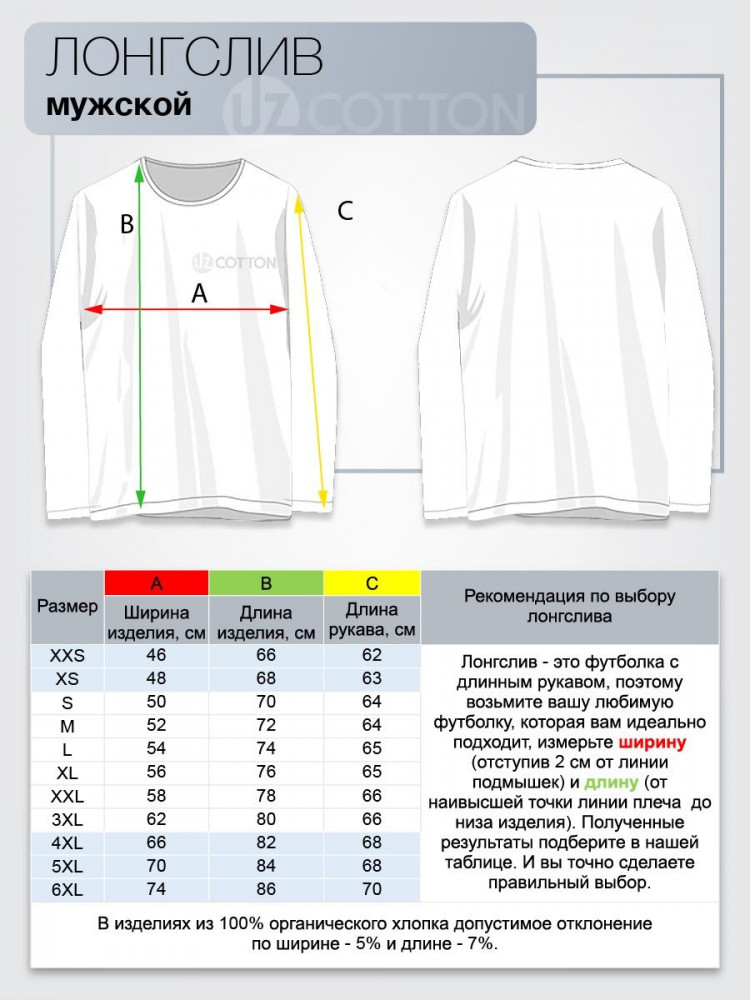 Прекрасный лонгслив, тем более за такие деньги. Единственное, что он по ширине не совсем соответствует. На такой размер и длину рукавов немного узковат. В общем, на худышек, но учитывая большой размер, немного непропорционально. Учитывайте при выборе. Если у мужчины, есть животик, лучше выбирайте другую модель.