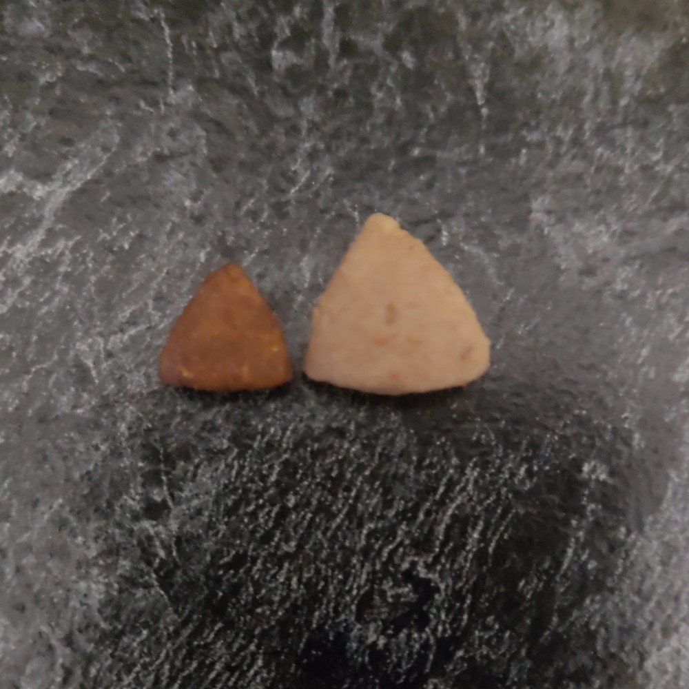 Кошечкам моим корм понравился. Единственное, они у меня плохо воду пьют, поэтому я каждый корм проверяю на впитываемость воды и насколько он увеличивается. За 1,5 часа корм полностью стал мягким, воды впитывает немного, но в таком виде они его есть уже не хотят. На фото сухой корм и пропитанный водой. Немного от корма начались запоры, дополнительно поила кошек водой со шприца и конечно давала его совсем по чуть-чуть, меньше суточной нормы, либо добавляла во влажный корм. Удобная зиповская застёжка на пачке, сохраняет свежесть корма. Расход корма минимальный.