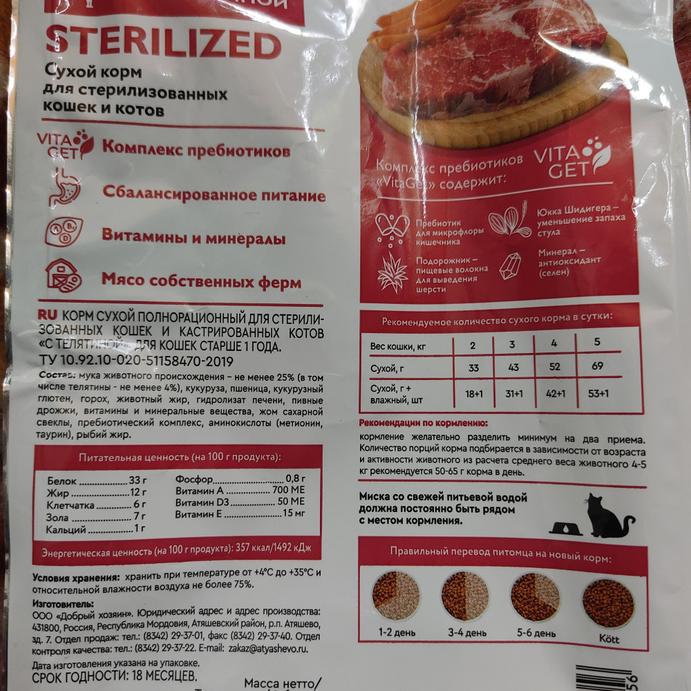 Отзывы «Корм сухой для стерилизованных кошек с телятиной»