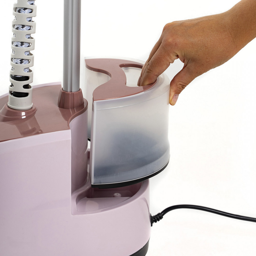 Отпариватель оснащен встроенной складной регулируемой стационарной вешалкой, которая удобна в хранении и позволяет подвешивать одежду во время отпаривания, а так же гладильной доской. Регулярно выполняйте простую очистку от накипи, чтобы продлить срок службы прибора. Отпариватель подходит для ухода за всеми тканями — решение для деликатных тканей, таких как шёлк и кашемир. Постоянная подача пара помогает удалить запахи и устранить 99.9% бактерий. Под действием пара ткань изделий не деформируется, в отличие от использования утюга. Прибор прост и удобен в применении.
