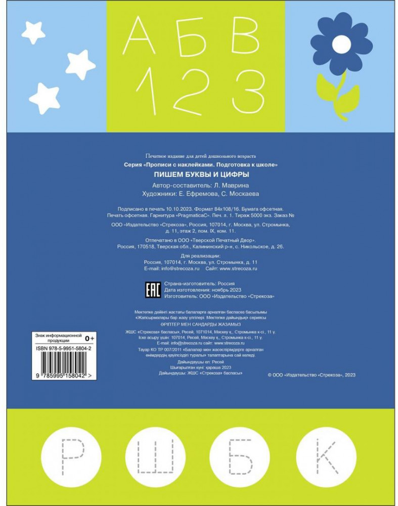 💳 Оплатить за товар можно при получении 🇰🇿 Есть бесплатная доставка по Казахстану от 1 дня 🎁 Копите бонусы с каждой покупки Серия: Прописи с наклейками. Подготовка к школе Эти прописи помогут вам научить ребёнка писать печатные буквы и цифры. Предложенные упражнения направлены на развитие мелкой моторики, улучшение координации, овладение навыками письма, запоминание букв и цифр. А яркие наклейки помогут превратить процесс обучения в увлекательную игру. Регулярно занимаясь с ребёнком, вы увидите, как он постепенно овладевает новыми графическими навыками. |