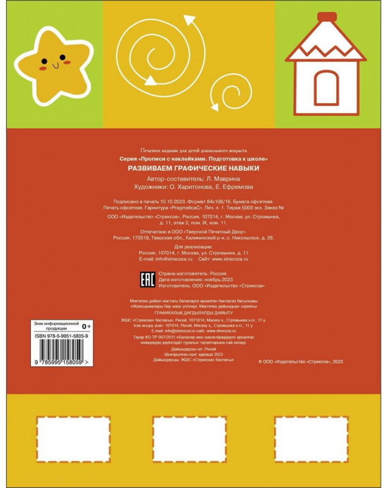 💳 Оплатить за товар можно при получении 🇰🇿 Есть бесплатная доставка по Казахстану от 1 дня 🎁 Копите бонусы с каждой покупки Серия: Прописи с наклейками. Подготовка к школе Эти прописи помогут вам подготовить руку ребёнка к письму. Предложенные упражнения направлены на развитие мелкой моторики, улучшение координации и овладение графическими навыками. А яркие наклейки помогут превратить процесс обучения в увлекательную игру. Во время занятий по этой книге малыш будет учиться аккуратно обводить, дорисовывать и раскрашивать различные элементы и линии. Регулярно занимаясь с малышом, вы увидите, как он постепенно овладевает новыми графическими навыками. |